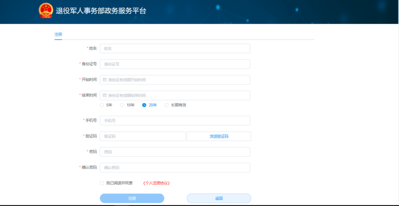 符合条件的退役士兵访问退役军人事务部政务服务平台,通过填写姓名、身份证号码、手机号等进行实名制认证,认证完成后可通过退役军人事务部政务服务平台登录部分退役士兵社会保险补缴受理系统。