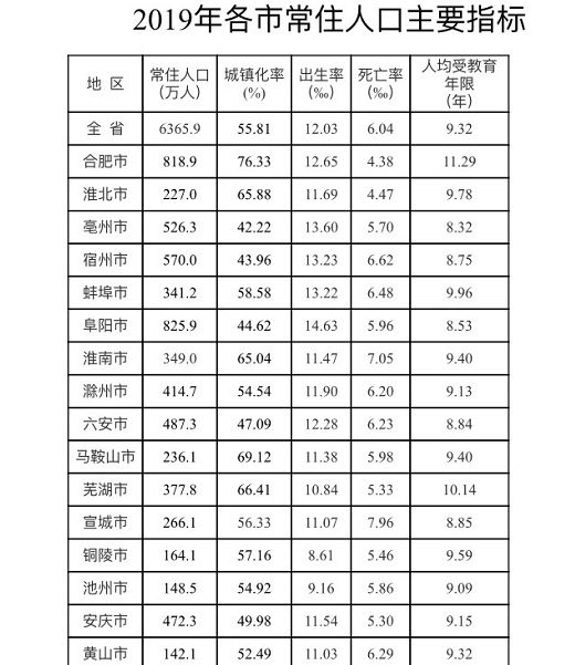 刚刚,安徽省统计局发布《2019年安徽省人口变动抽样调查主要数据公报》,此次调查以2019年11月1日零时为标准时点,共调查登记人口78.9万人。2019年合肥市2019年常住人口为818.9万人,城镇化率达76.33%。