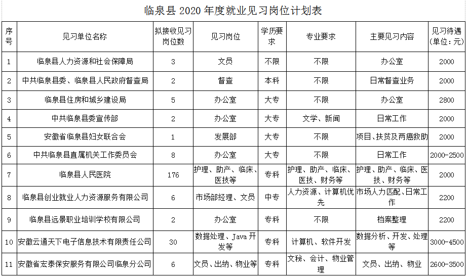 @找工作的年轻人,临泉县2020年度就业见习岗位发布