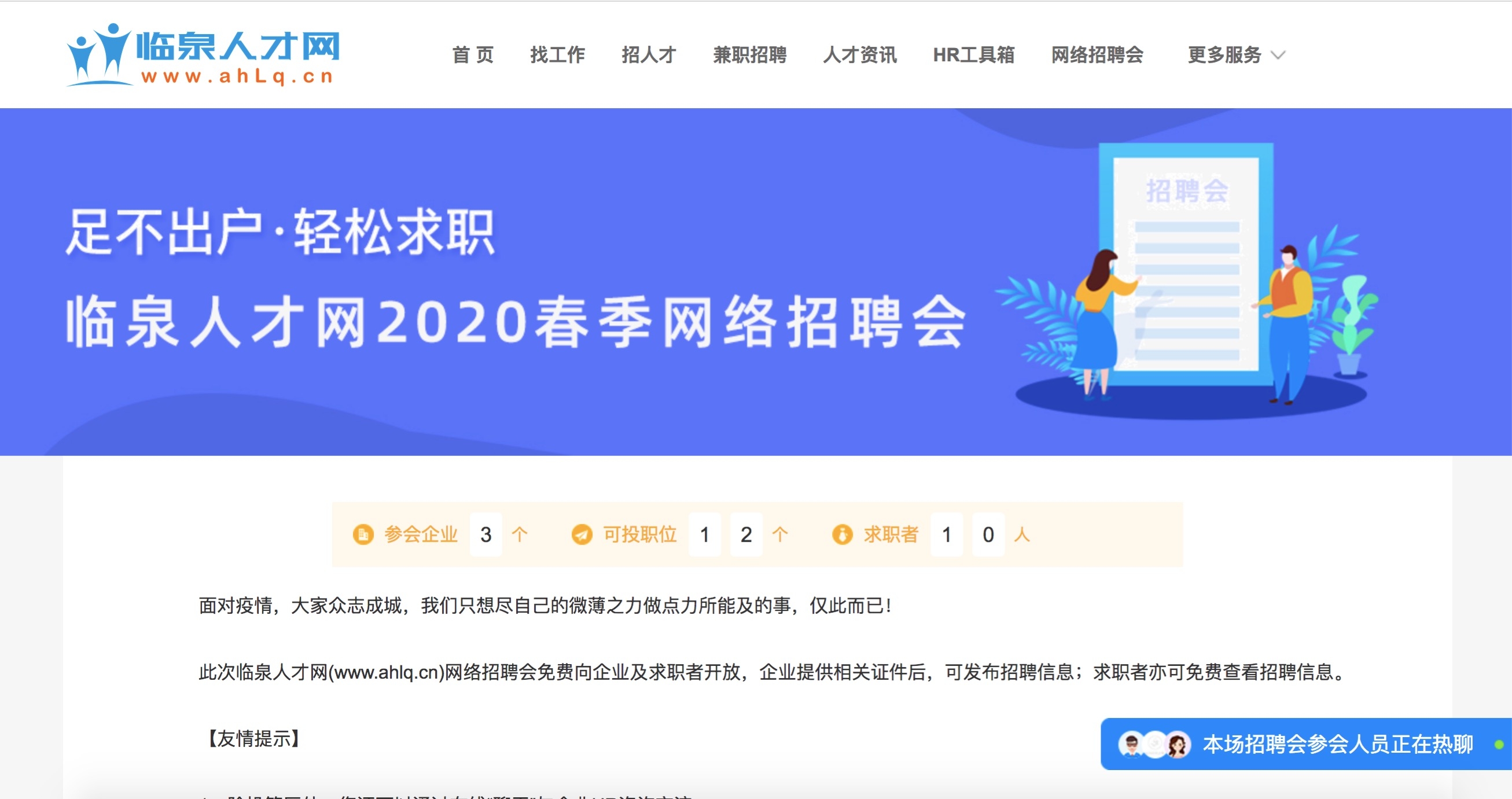 足不出户,轻松求职!临泉人才网2020春季网络招聘会开启