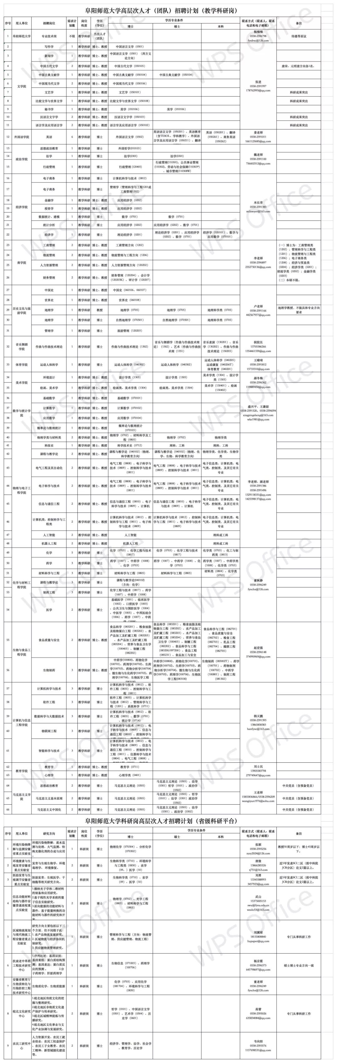详见《阜阳师范大学高层次人才(团队)招聘计划》(附件1)。(点击原文链接即可查看)