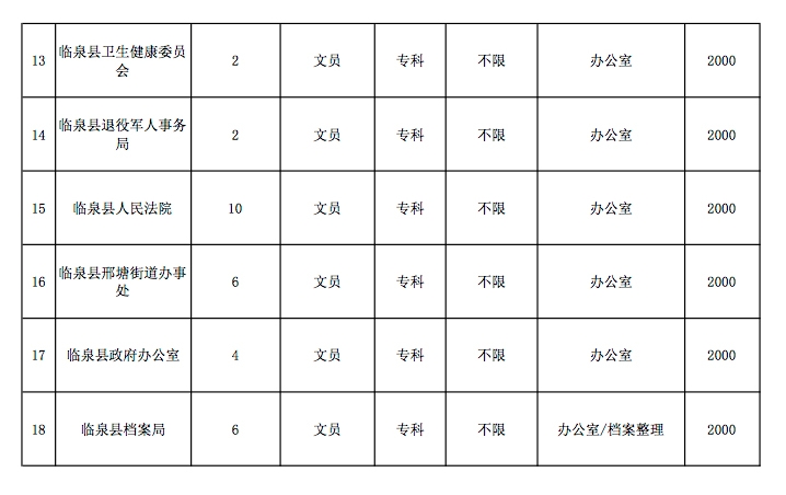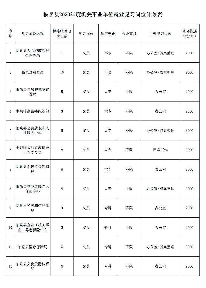 附件:临泉县2020年机关事业单位就业见习岗位计划表