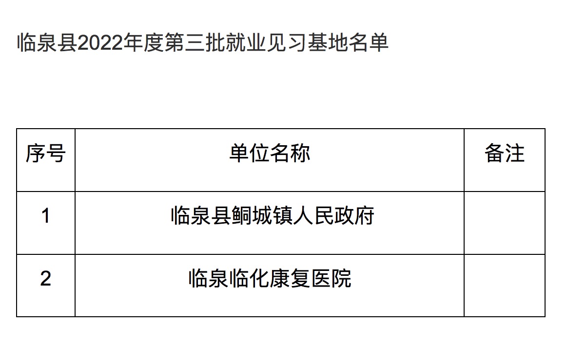 关于临泉县2022年度第三批就业见习基地认定结果的公示